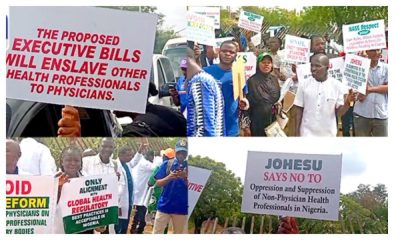 The protesting health workers are against the bill, claiming that if allowed to pass, it would subject every medical profession to the regulation of the Medical and Dental Council of Nigeria.